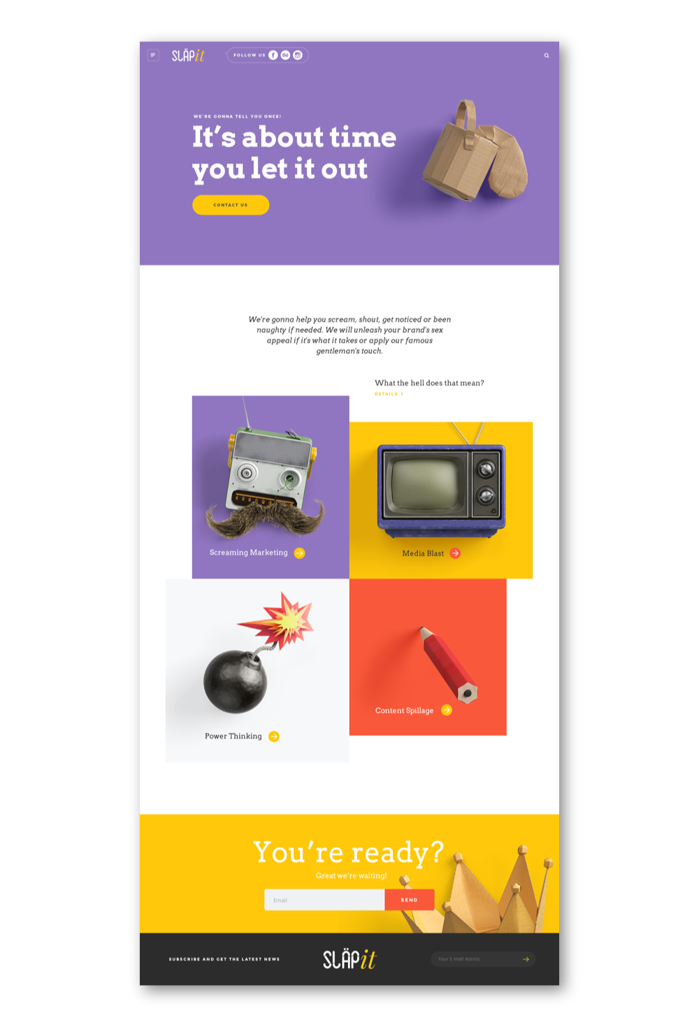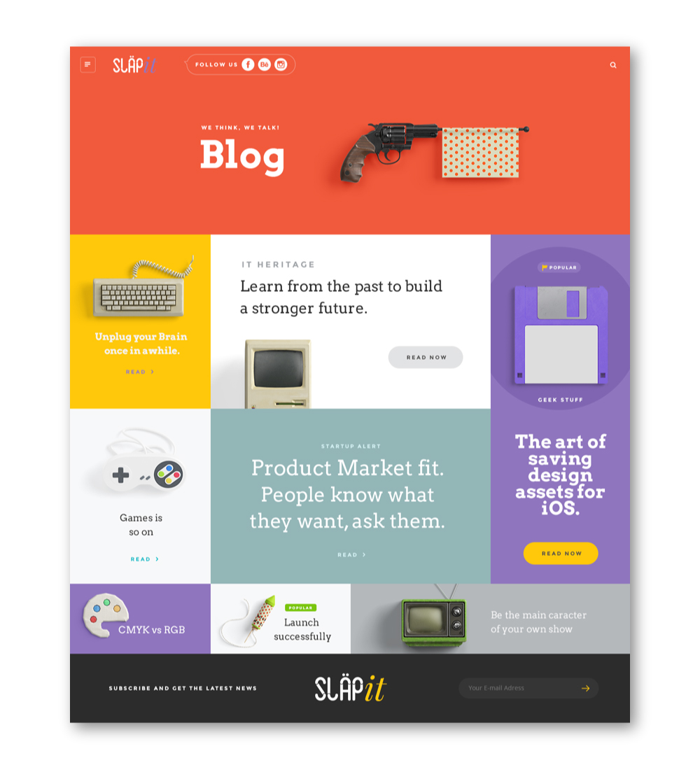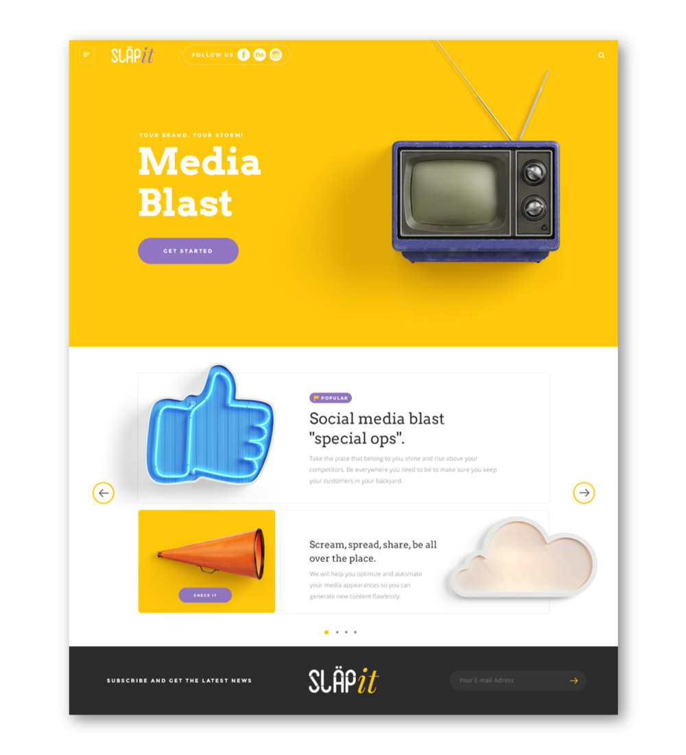 Is a candy project for your eyes only. Slapit is a mix of vibrant colors, energetic layouts and clear content for a smooth and pleasant navigation.