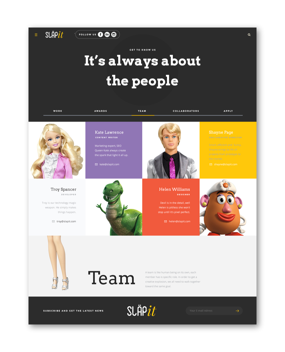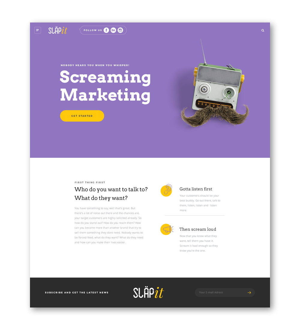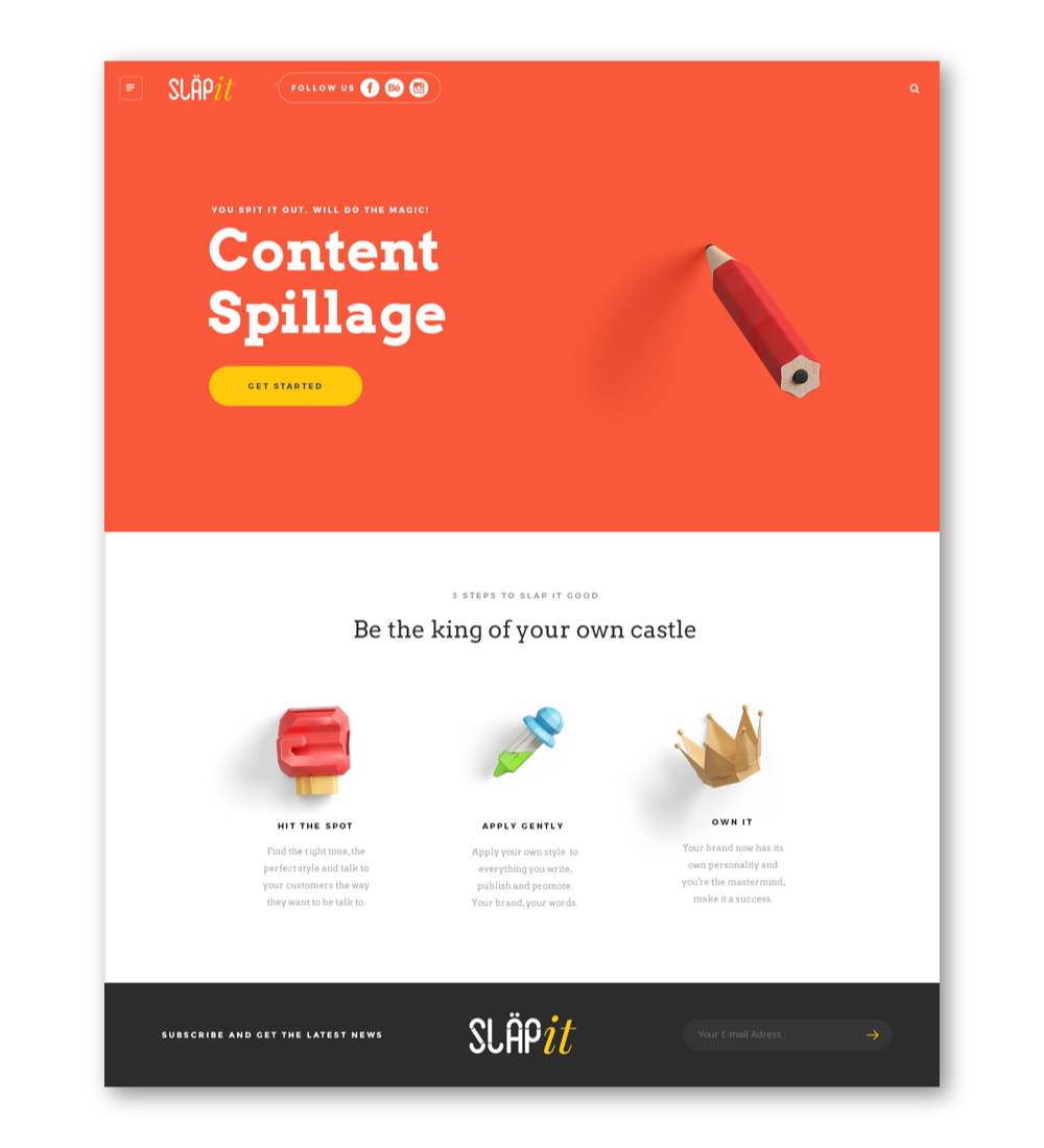Is a candy project for your eyes only. Slapit is a mix of vibrant colors, energetic layouts and clear content for a smooth and pleasant navigation.